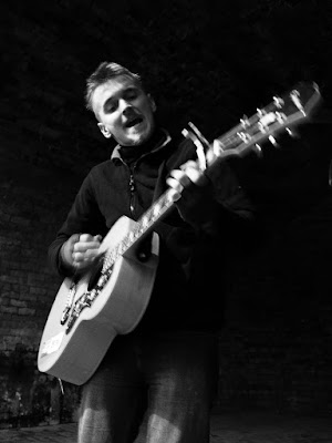 I didn't know whether to post this picture or not, it has every technical fault going, camera shake, subject movement, burnt out highlights, picture noise, there wasn't really enough light to take a picture in the first place, so why did I take it? Simply because the musician (and he was a musician, quite a good one) asked me to. I'm always willing to send someone a picture if they want one. I did point out that there wasn't really enough light and the resulting pictures would be poor. Sure enough, the pictures were poor, soft, grainy, not worth bothering with, and I came away promising to have another go if our paths crossed again in the future. Looking at the pictures again though, a few days later, and I'm not sure if the technical quality really matters, maybe I should have just sent them on in the first place.